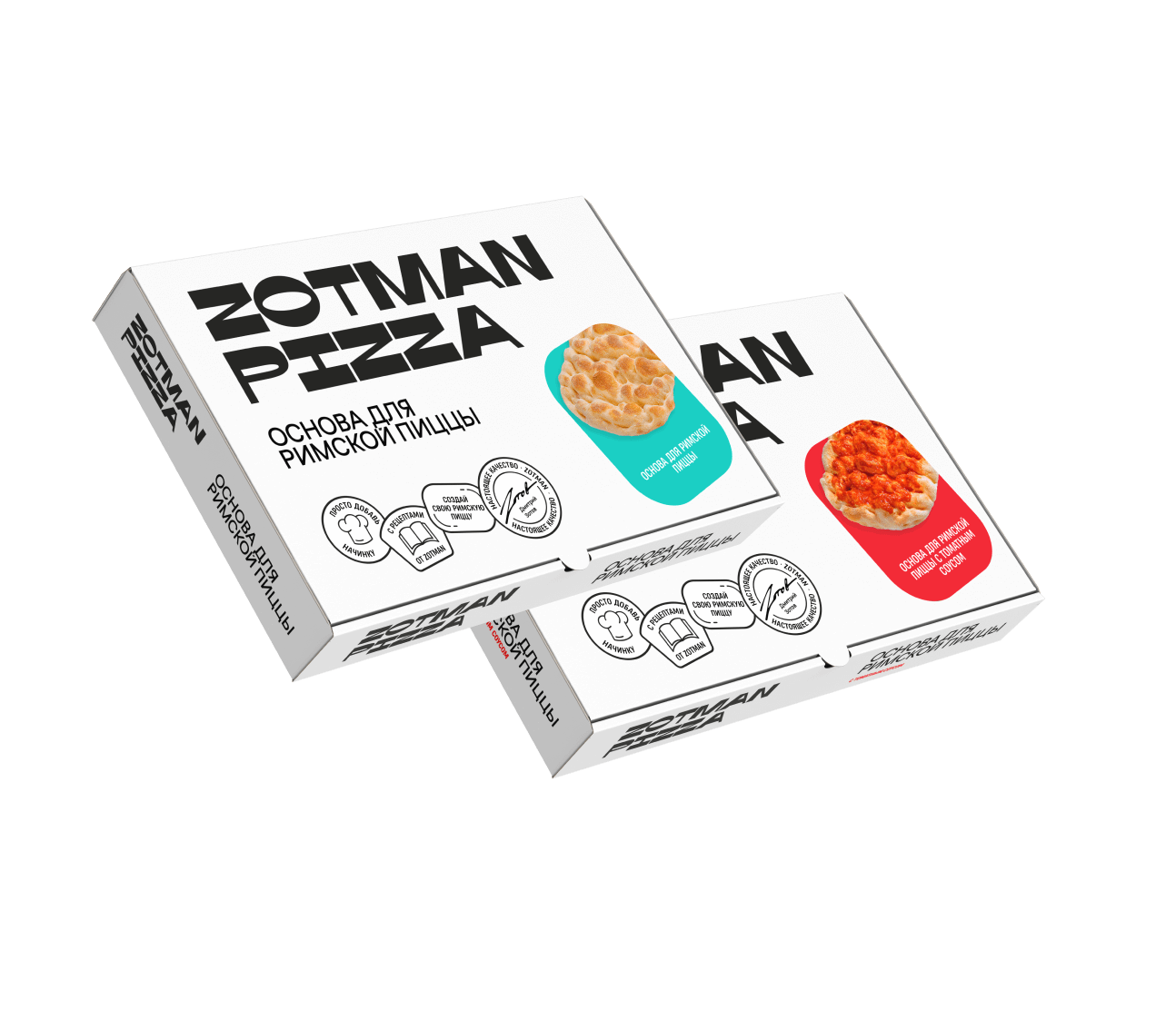 Создай свой уникальный рецепт — просто возьми одну из основ для римкой пиццы Zotman: классическую или с томатным соусом и нанеси на неё любимые ингредиенты